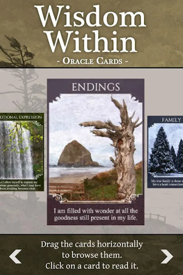 The Wisdom Within Oracle Cards are designed to uplift, inspire, and empower you to remember the very best in yourself and to open the floodgates of wisdom, light, and joy within you. These cards point you in the direction of discovering your own inner truth, knowing that the most meaningful and enduring answers are those that are found within. You can use this app as a full-featured, ad-free and time-unlimited "Lite" version, or unlock the full deck for a small fee.