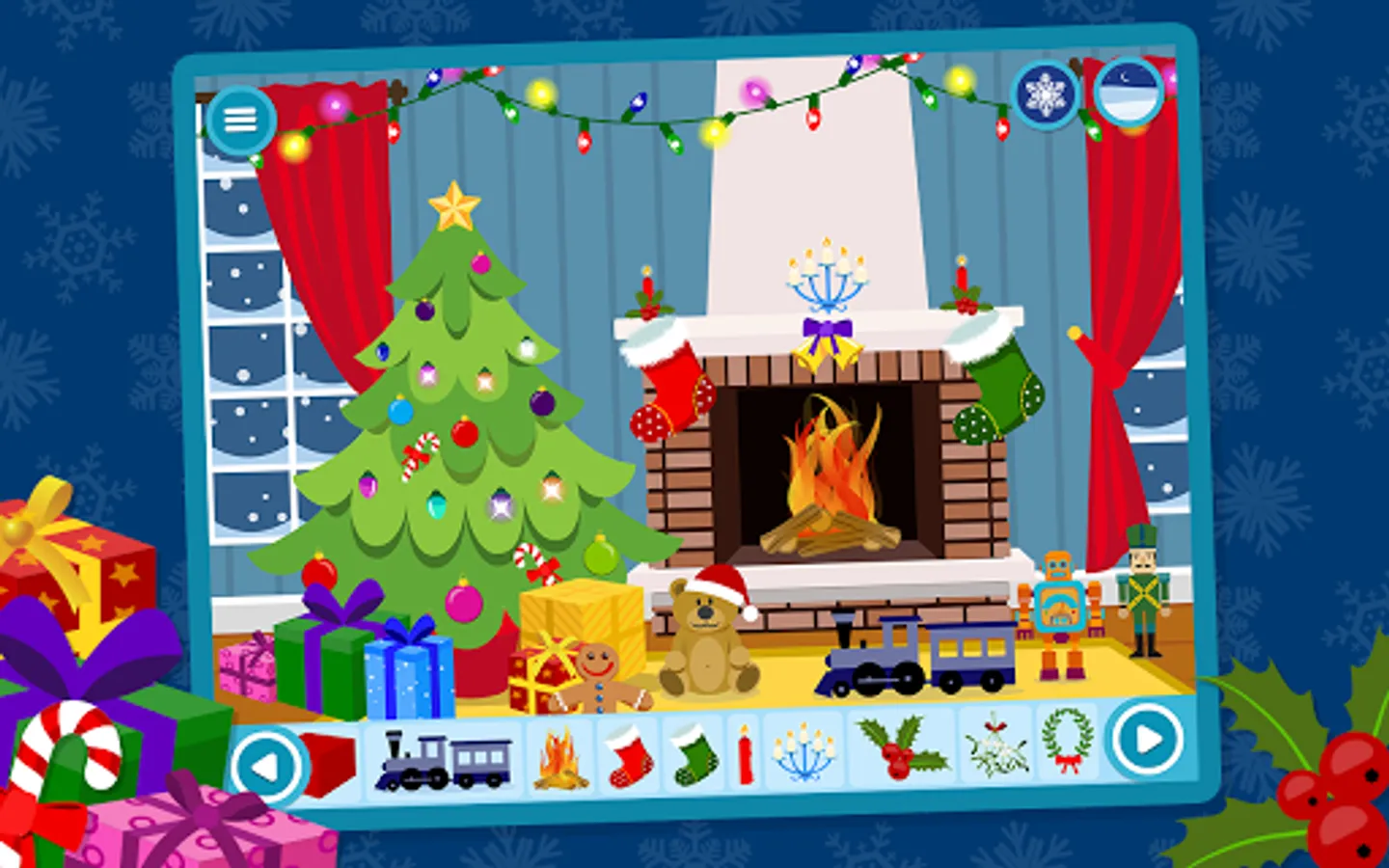 The game features typical items from the festive period such as Christmas characters, decorations, presents, toys and much more. By dragging and dropping these digital, animated ‘stickers’ onto the different backgrounds available, your child can create a large number of unique scenes. A clear voice-over reads the name of each item aloud, and is accompanied by fun animations and sound effects where possible. Make a Scene recreates the popular ‘fuzzy felts’ and sticker books in an interactive digital product.
