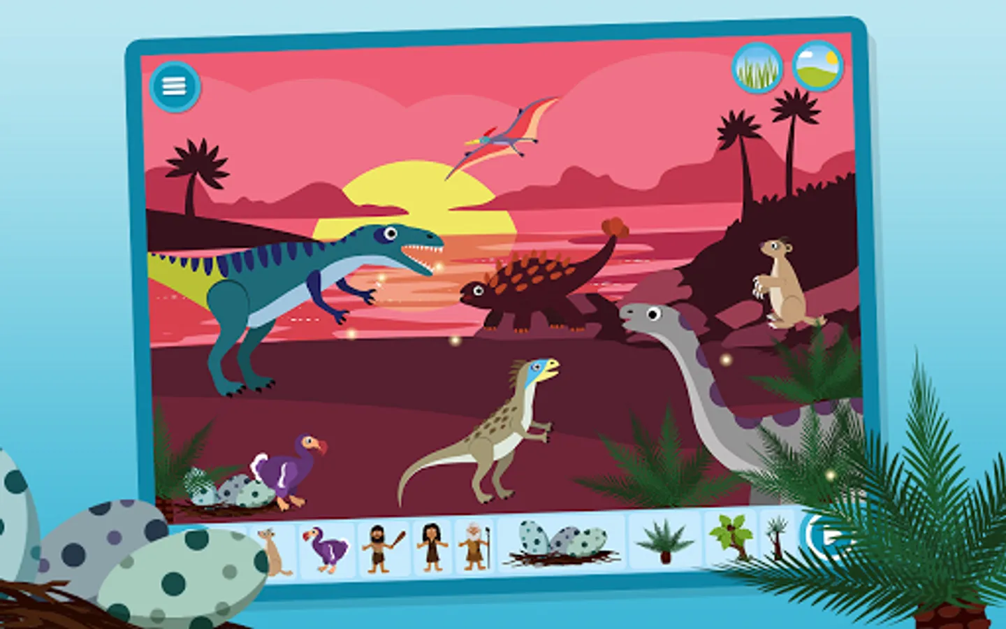Make a Scene Dinosaurs uses drag and drop interactions, descriptive audio, fun sound effects and engaging animations to create an entertaining, educational platform. Children will have endless fun using their imagination to create their very own prehistoric scenes.