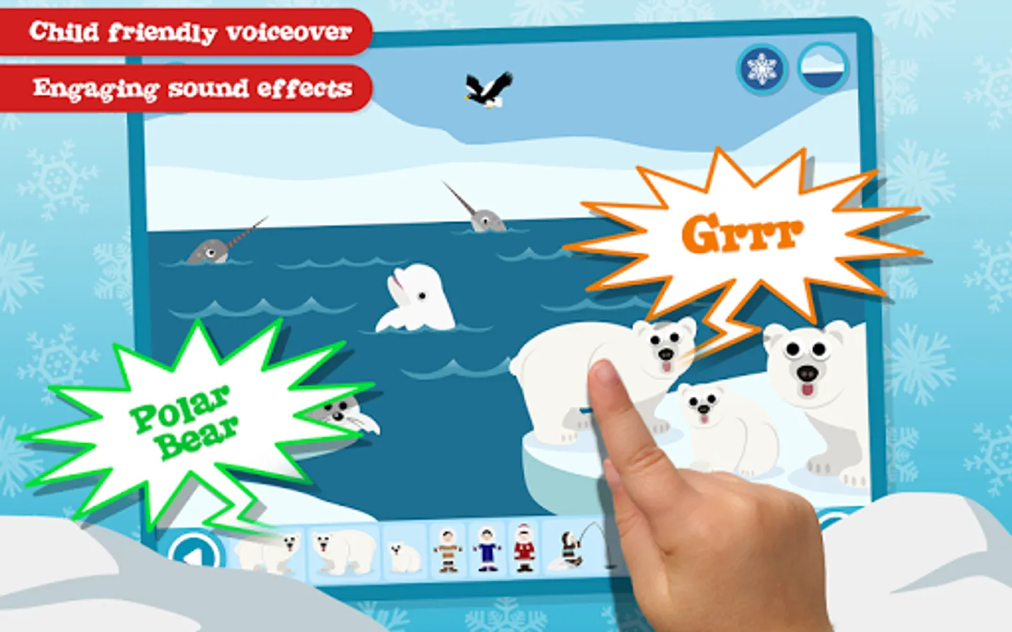 Make a Scene Polar Adventure uses drag and drop interactions, descriptive audio, fun sound effects and engaging animations to create an entertaining, educational platform. Children will have endless fun using their imagination to create their very own polar scenes.