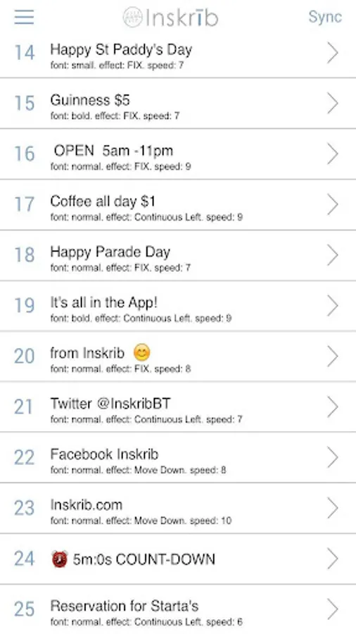 Inskrib is an App for controlling a portable Light Emitting Diode (LED) display device ideal for a wide range of indoor and outdoor marketing and advertising purposes like Real Estate, Retailers, Store Fronts, Kids Events, Little League, Tailgating, Countdowns, Limo Drivers, Bars & Restaurants, DJ's, Dorm Rooms, Recording Studios, Vehicle Messages, Healthcare Facilities, Offices, etc. Using the Free App you can quickly display an exciting variety of messages with one quick swipe. You can control these message changes from as far as 30 feet away.