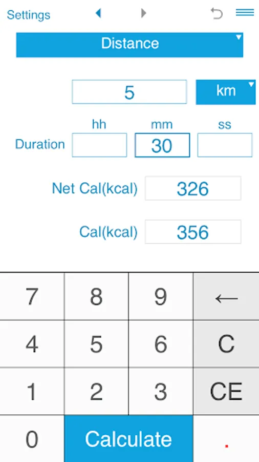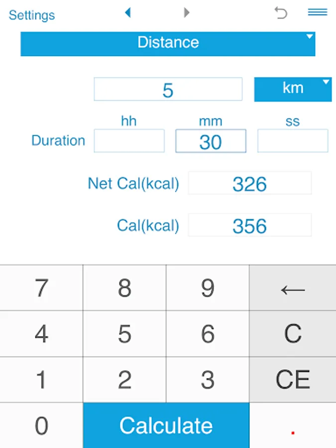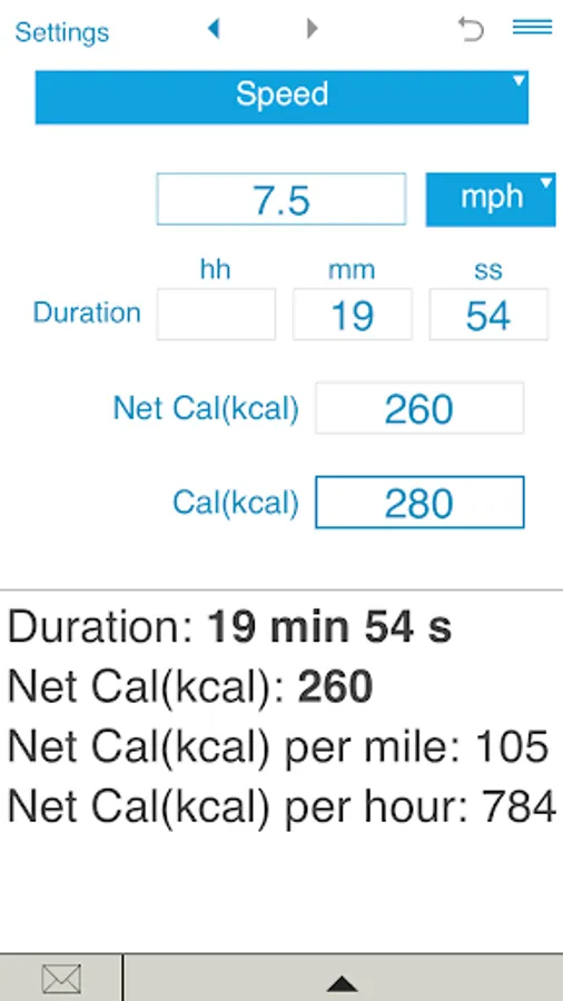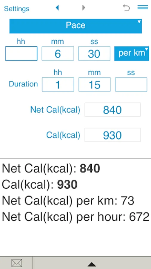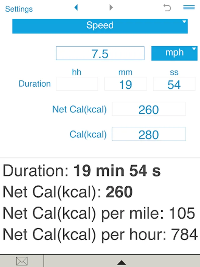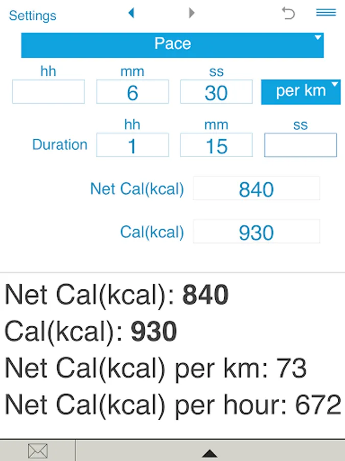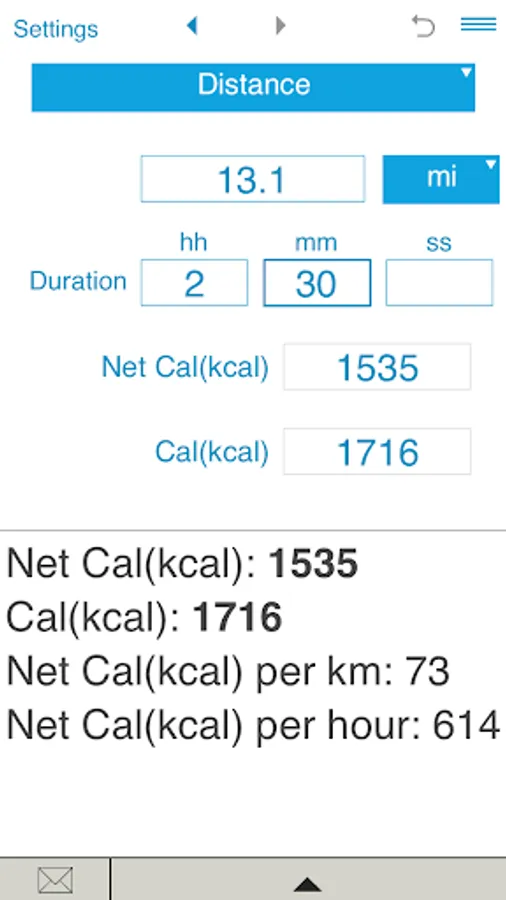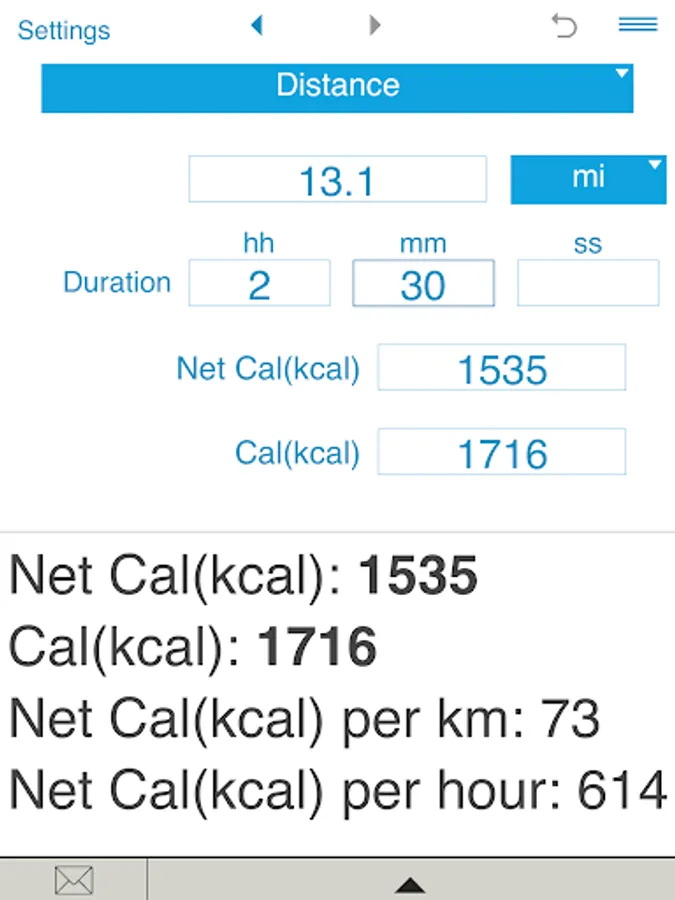 The calculator also estimates net calories per hour, net calories per mile and net calories per kilometer.