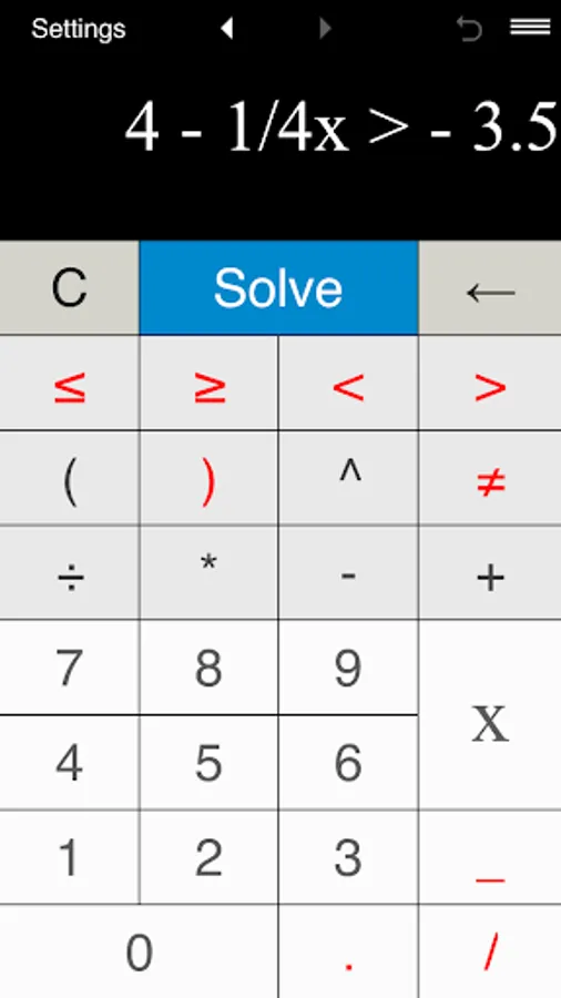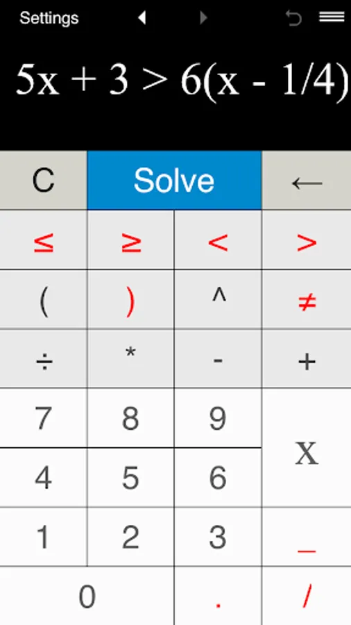 Note: The calculator does not solve inequalities with variables in the denominator.