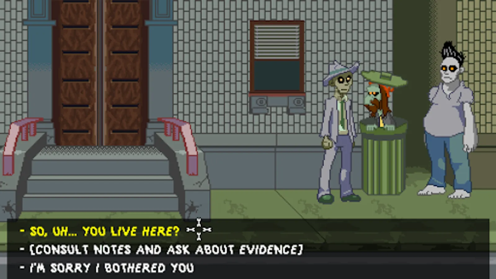 Interrogate witnesses, find clues, combine them to form your own deductions and find the culprit... or send an innocent zombie to jail!