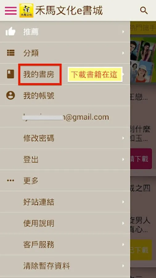 Android 版與 iOS 版的「禾馬文化e書城」是各自獨立的 app,會員帳號無法互通。