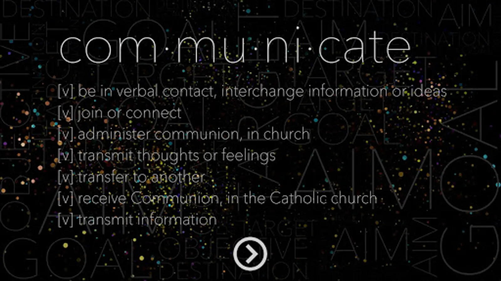 Synonymy is a game of finding the paths between random words through their network of synonyms. By taking the synonym of a word, and then a synonym of that synonym, and so on, you can ultimately arrive at any other word in the English language. (more languages forthcoming!)