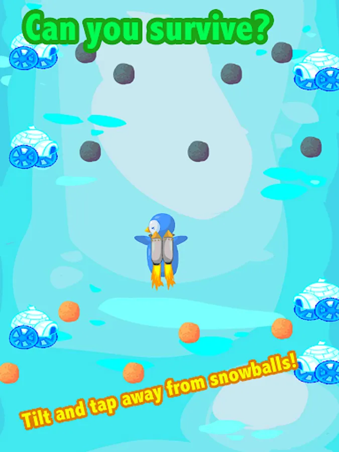 Use your dodging skills and trusty jetpack to tilt your penguin away from killer snowballs and cannons! Tap and tilt to navigate your penguin past as many cannons as possible while dodging snowballs. The icy snow cannons won't stop firing at you!