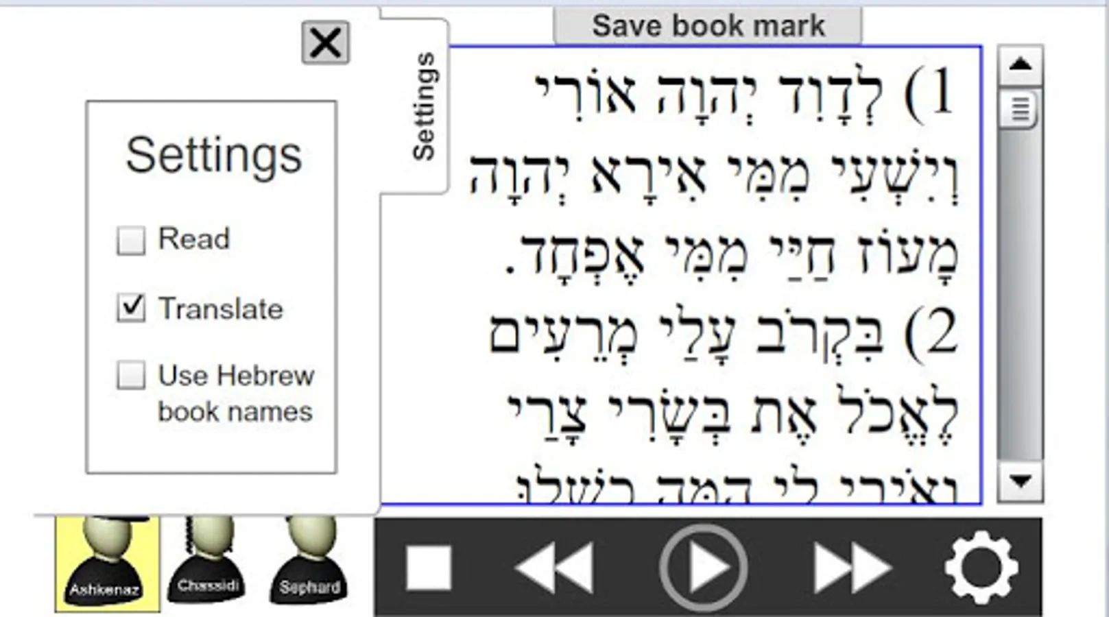 The Psalms Reader was developed to give the user the ability to read Psalms in the original Hebrew and understand the meaning of every word.