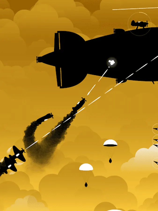 • 15 enemy types. Each aircraft is inspired by a real machine. Fight against "Zero", "Superfortress", "Peshka", "Spitfire", and even V-2 rocket. Intelligent enemy AI can perform advanced defend and attack maneuvers.