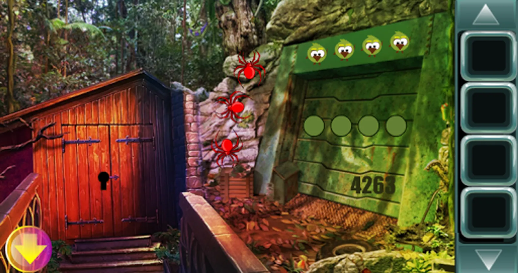 Welcome back, escapers! Story of this game ,Run Forrest, run! I will hold them of. Oh, no. They captured him. Please help me save Forrest the dog from the hand of these hunters. His cage is somewhere in this Forrest. They must have gone somewhere, as I can't see them anywhere. Good, they left him unattended. Still, it will be hard to get Forrest out of there. We have to solve a bunch of puzzles to open the cage. What's up with these swimbelts? Are they hunters and pirates at the same time? No... It has to mean something else. We must solve this before the hunters come back. Hurry!