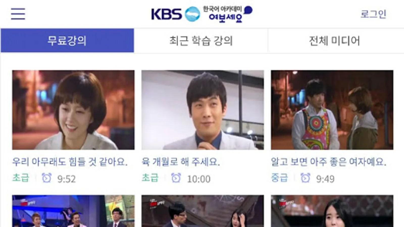 Watch the videos provided by Yeoboseyo and learn to speak Korean through conversations with actors.