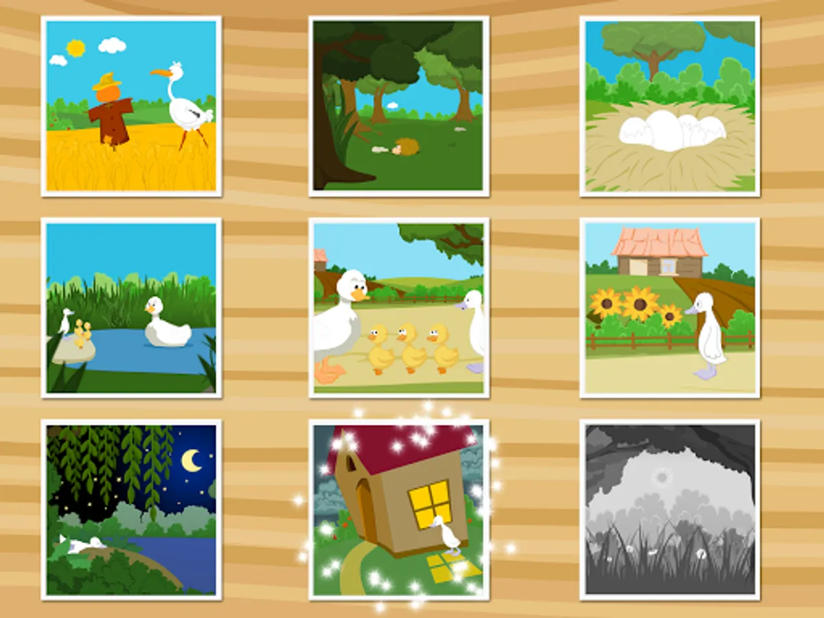 Among children puzzle games, you will love this one! Easier 9 pieces puzzles, medium difficulty 16 pieces ones and more complex 25 pieces puzzles, that help children exercise and practice their ability to correlate images and shapes. All of them are inspired by the Ugly Duckling story.