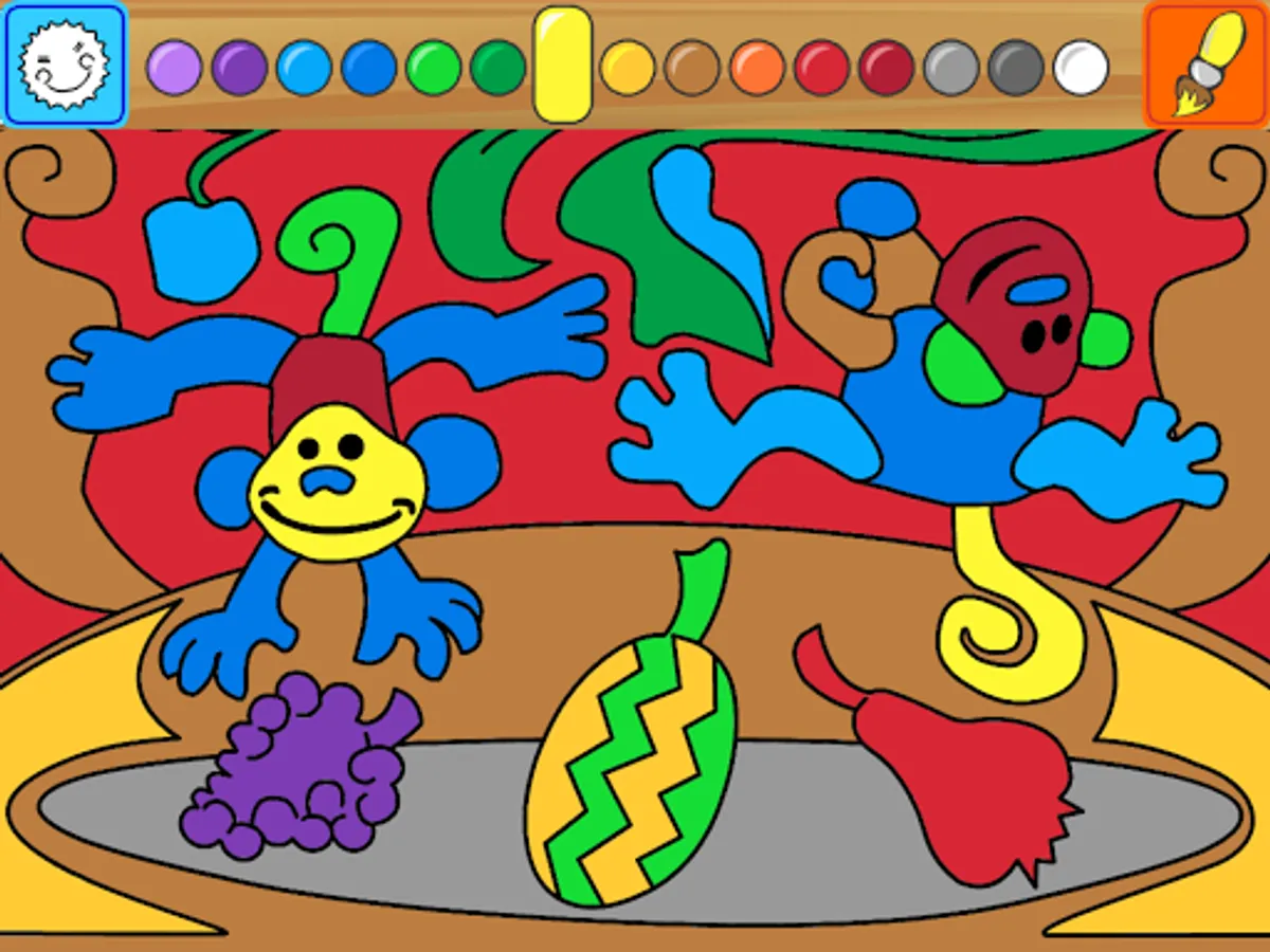 Not many coloring games are so popular in Monkey King's kingdom! The Monkey King is now 400 years old. Your child is now the King's Painter in this beautiful coloring and painting game. The canvass and colors are ready to be used, a whole collection of canvases from all over the world are ready to be filled with color.