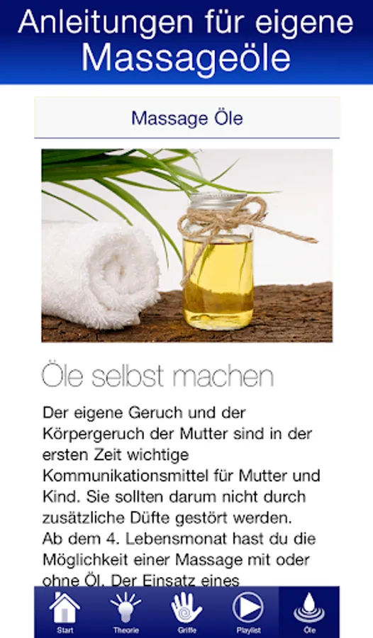 With a clear theoretical part of the app informs initially benefits of baby massage, general conditions and the basic procedure at a baby massage. Images and text illustrate the execution of the individual handles and make the massage so for everyone - with or without the knowledge - easy to learn. By using the audio tracks to switch between massage and reading is avoided. You can devote your baby you so completely. At the same time you can be accompanied by your massage relaxing background music.