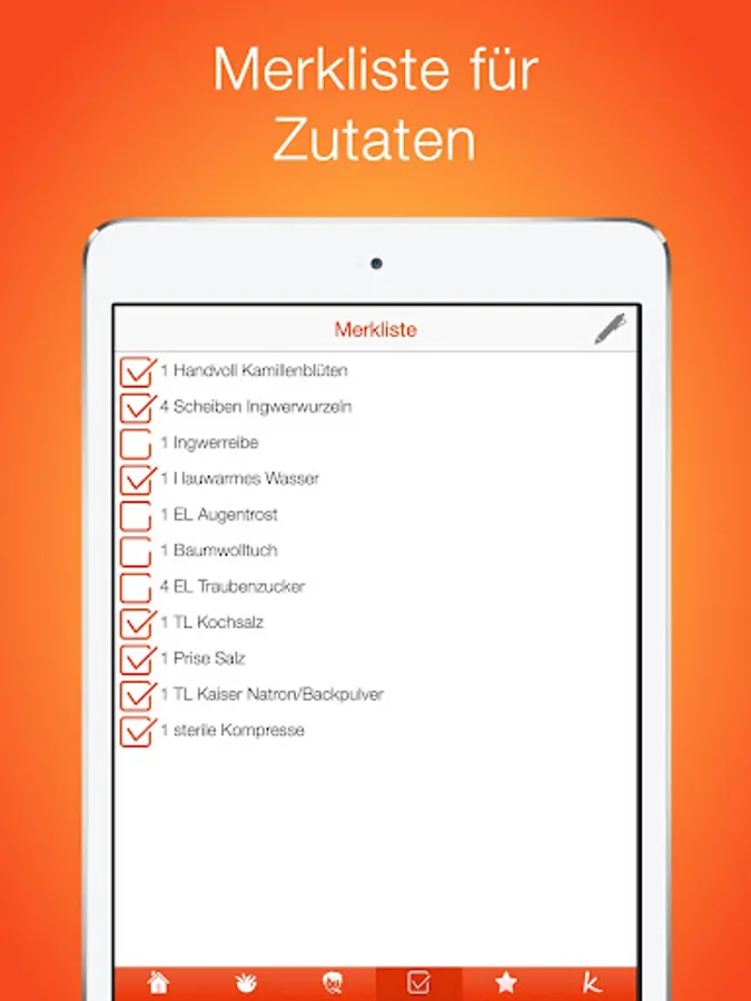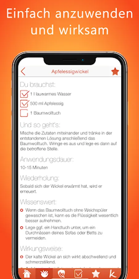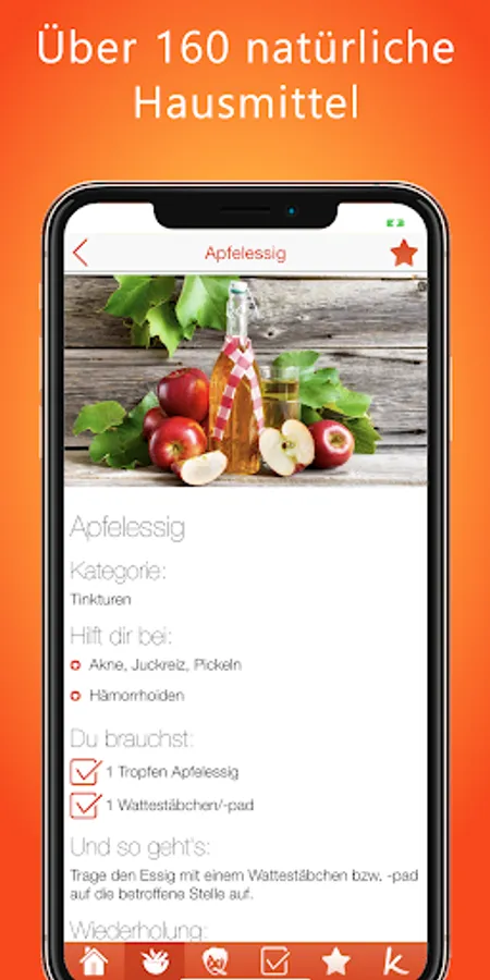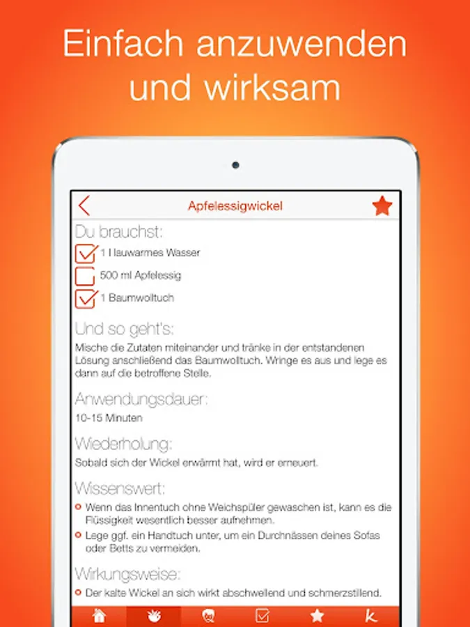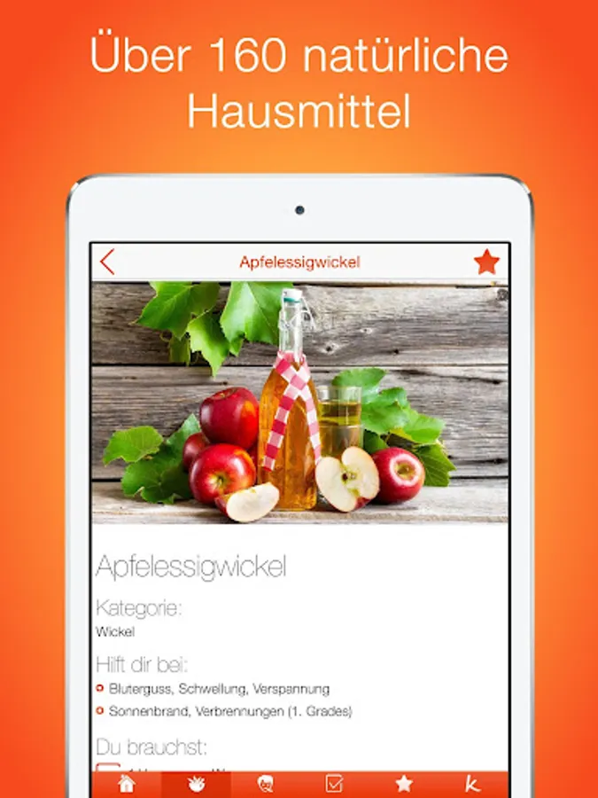 In this app you can find in addition yet known home remedies such as grated apple, onion sacks and Wadenwickel over 160 tested recipes for almost any ailment - even hemorrhoids, herpes or a bad hangover. Whether bathroom, ointment or tea - here is something for everyone! The recipes are illustrated, equipped with an interactive of ingredients / shopping list, easy to follow instructions, practical tips, useful information for action.