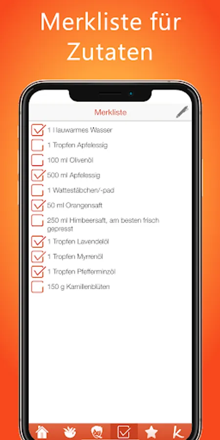Get yourself your own, very individual remedies app by trying out recipes, provide with notes and those markierst, who helped with a variety of complaints in a natural way and without major side effects. So you are automatically better prepared next time.
