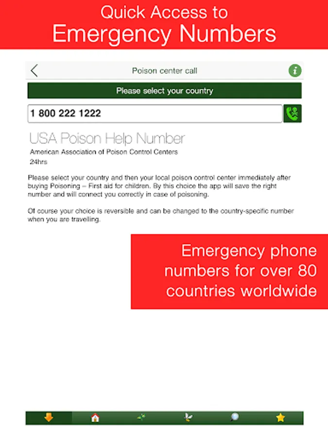 Whether household product, plant or snake bite - "Poisoning - First Aid for Children" will help you to do the right thing in a poisoning emergency! Look for your toxin quickly and intuitively, learn about its toxicity and use symptoms, "DOs" and "DON'Ts" as guide for the right steps. Please select your country and then your local poison control center. By this choice the app will save the right numbers and will connect you correctly in case you should find yourself in an emergency situation. Of course your choice is reversible and can be changed to the country-specific number when you are travelling.