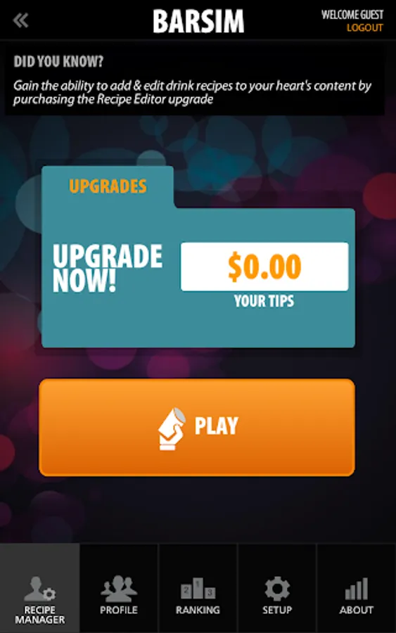 Speaking of tips, these aren't just useless points you're earning. Tips are used within the Bartender App to purchase bar tools, expand your recipe book, upgrade your tools & More. Additional upgrades are available to unlock the Recipe Editor Feature, add a second tier to your Speed Rack & to Remove ads. Don't forget to customize the Speed Rack to optimize your speed.