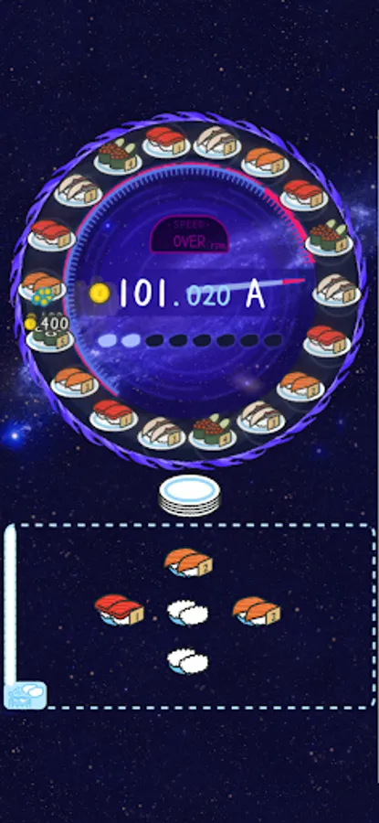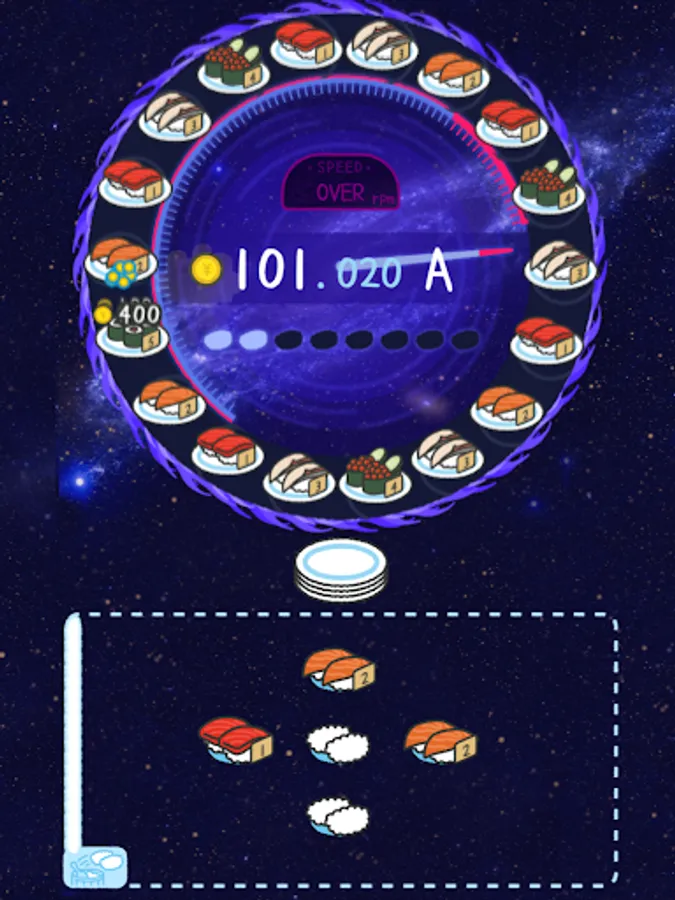 Cosmic Spin lets you spin the conveyor belt as fast as you can! Feast your eyes on your galactic smorgasbord of spinning sushi!