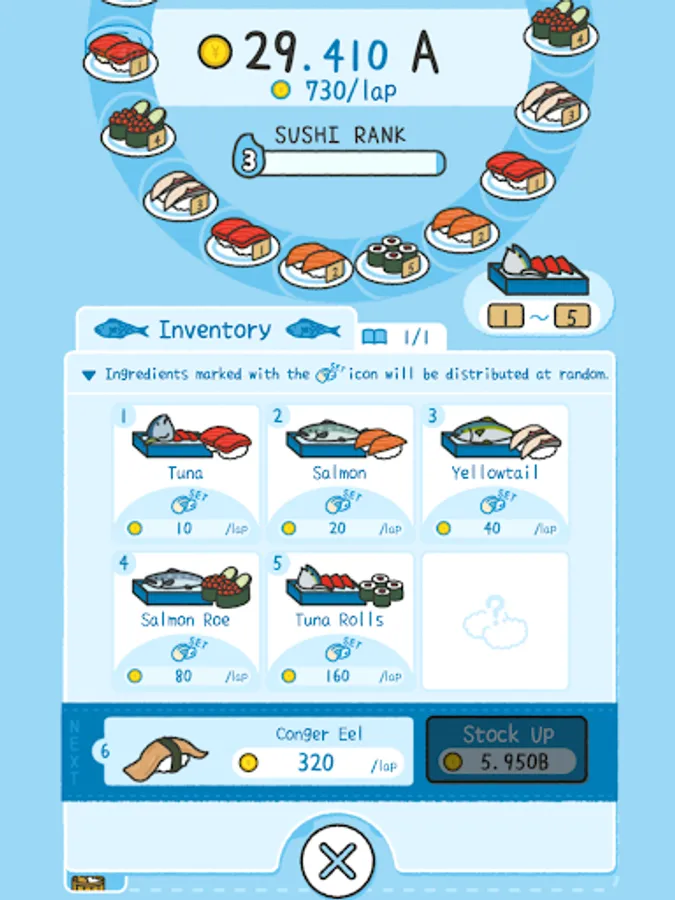 A casual, free-to-play simulation game. Sure, running a restaurant is fun, but why not try your hand at your own sushi place? Fun for all ages—combine and collect sushi to become a true sushi master!