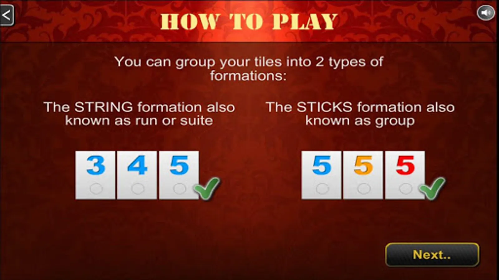 The game starts with 106 cards. Every player has to form valid card formations (ex: 12-12-12 or 3-4-5).