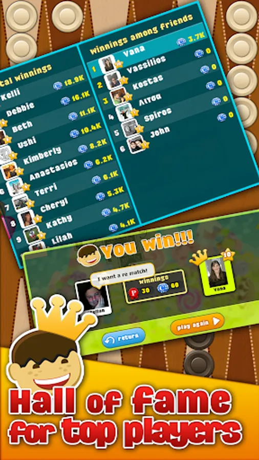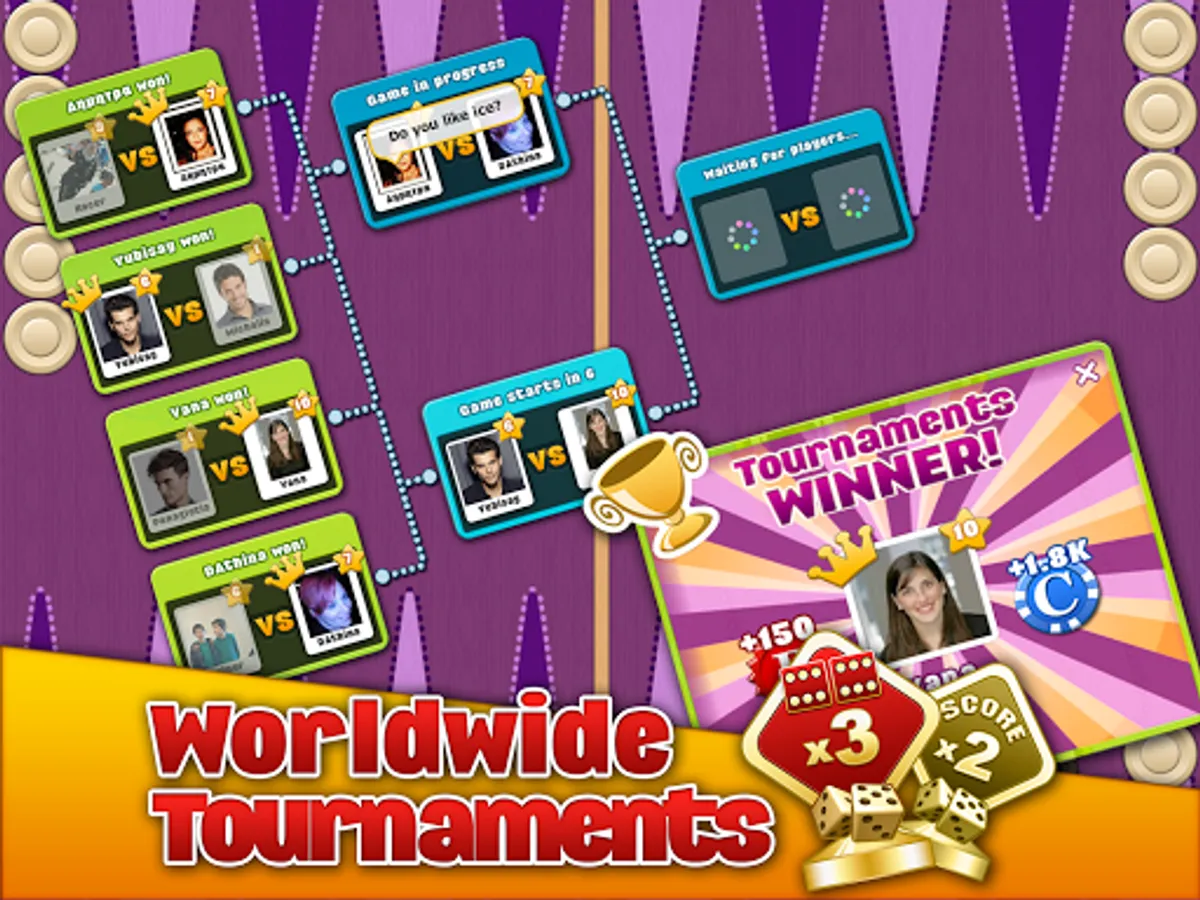 Backgammon Arena is multiplayer and can be highly competitive among elite dice gurus. Luck is needed but long practice is Gold! Test your skills and strategy, win one match after the other, have fun with buddies, level up, enjoy prestigious trophies, earn amazing prizes and become the master of the best and most popular dice game!