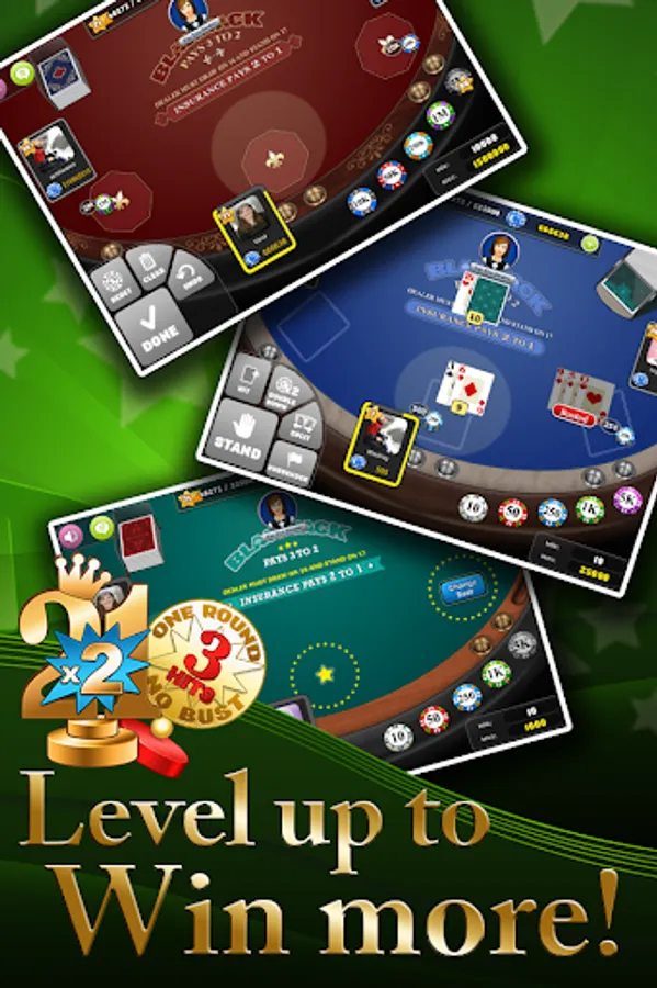 BlackJack or TwentyOne ( 21 ) is the most popular casino style board game of luck and strategy played with cards. BlackJack Arena app is a free social casino version of the classic 21 game. Νo need to get to Macau or Monte Carlo for tournaments, play from anywhere with your friends or family and beat the dealer!