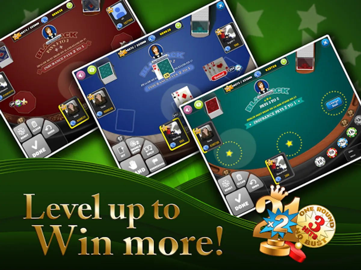 Blackjack Arena is multiplayer, you can play online with 2 or 3 other players in the same table depending on the mode. Practice and training is the key! Win one match after the other, have fun with buddies, level up, enjoy cool mini games, earn amazing prizes and become the master of this popular social casino card game.