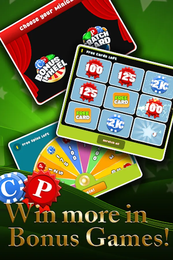 • Amazing MINI GAMES with prizes: Bonus Wheel spin mania and Scratch Cards; win chips, points or diamonds!