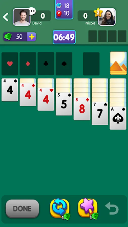 While playing live with other opponents in Solitaire Wonders, you are able to see their progress real-time, a feature which makes the game even more competitive and fun!