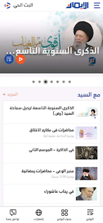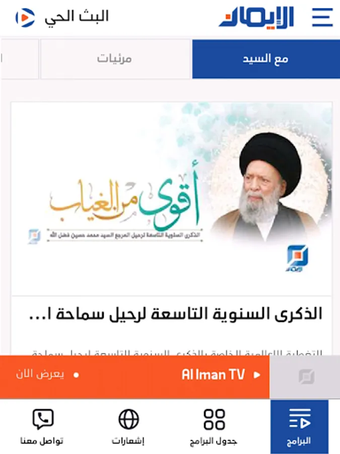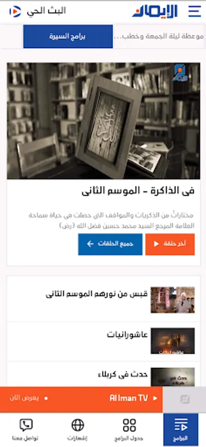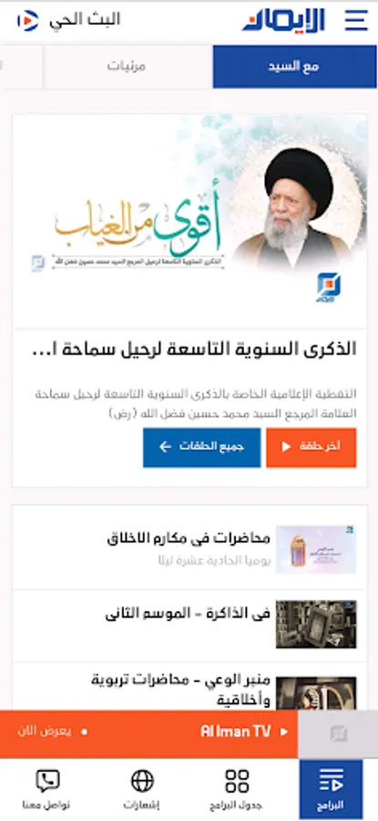 -متابعة كافة حلقات البرامج ومحاضرات سماحة العلامة المرجع السيد محمد (رض) .