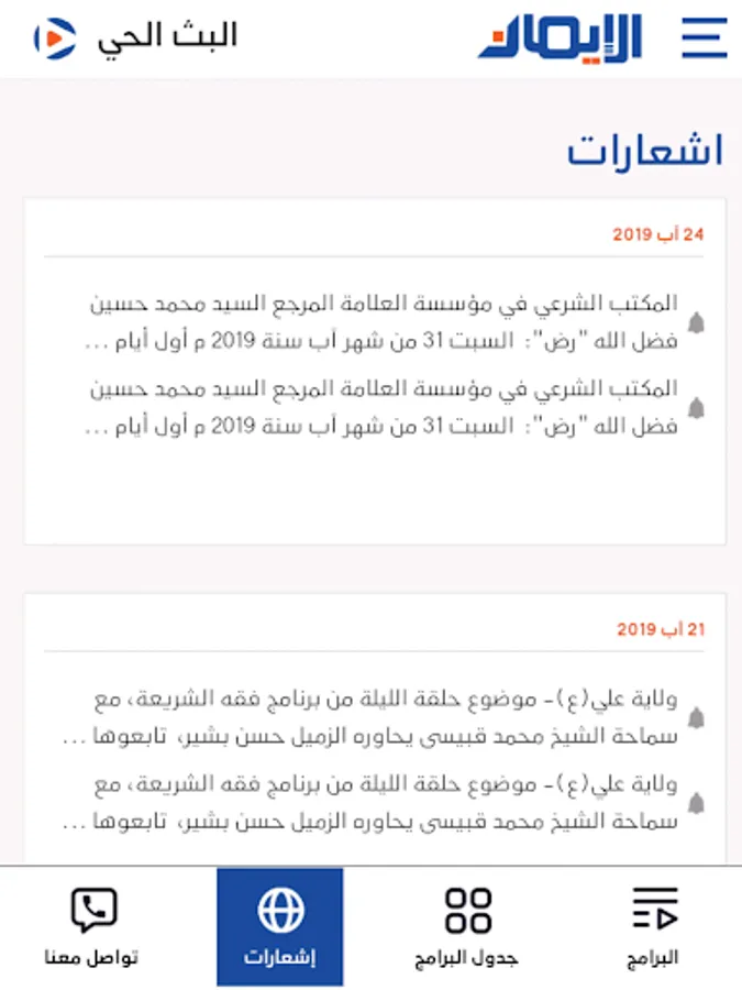 - الحصول على إشعارات بمواعيد ومواضيع البرامج اليومية .
