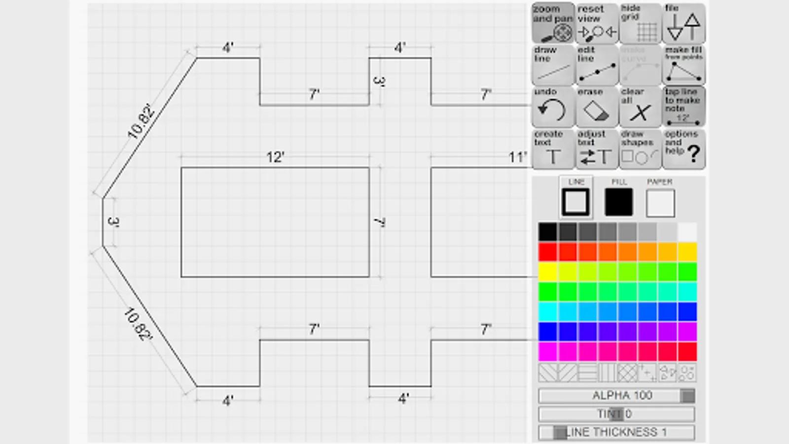 Snap Draw Pro is a simple to use and powerful app to help you make detailed plans or simple drawings.