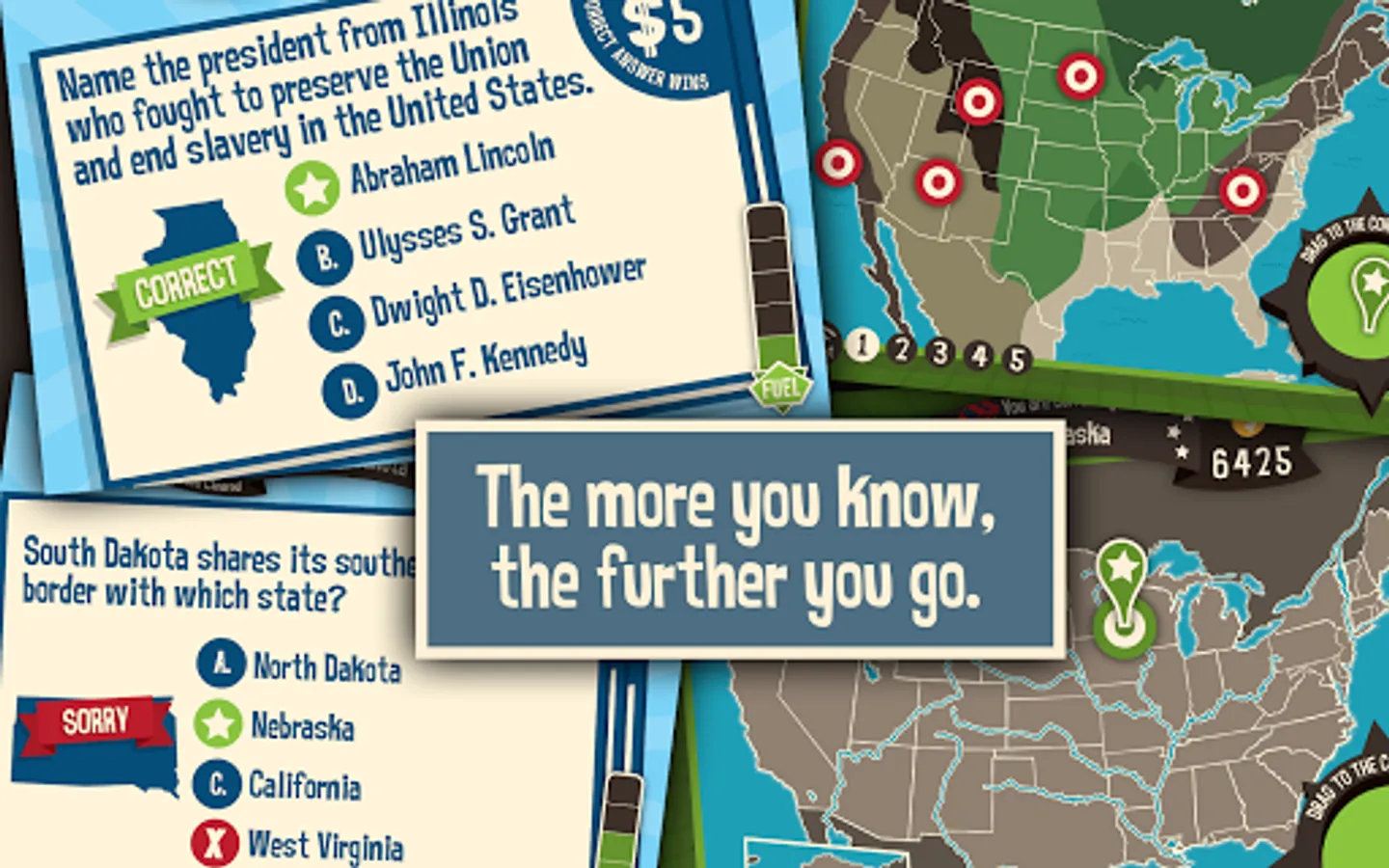 • Engaging trivia game play that makes learning social studies fun for kids.