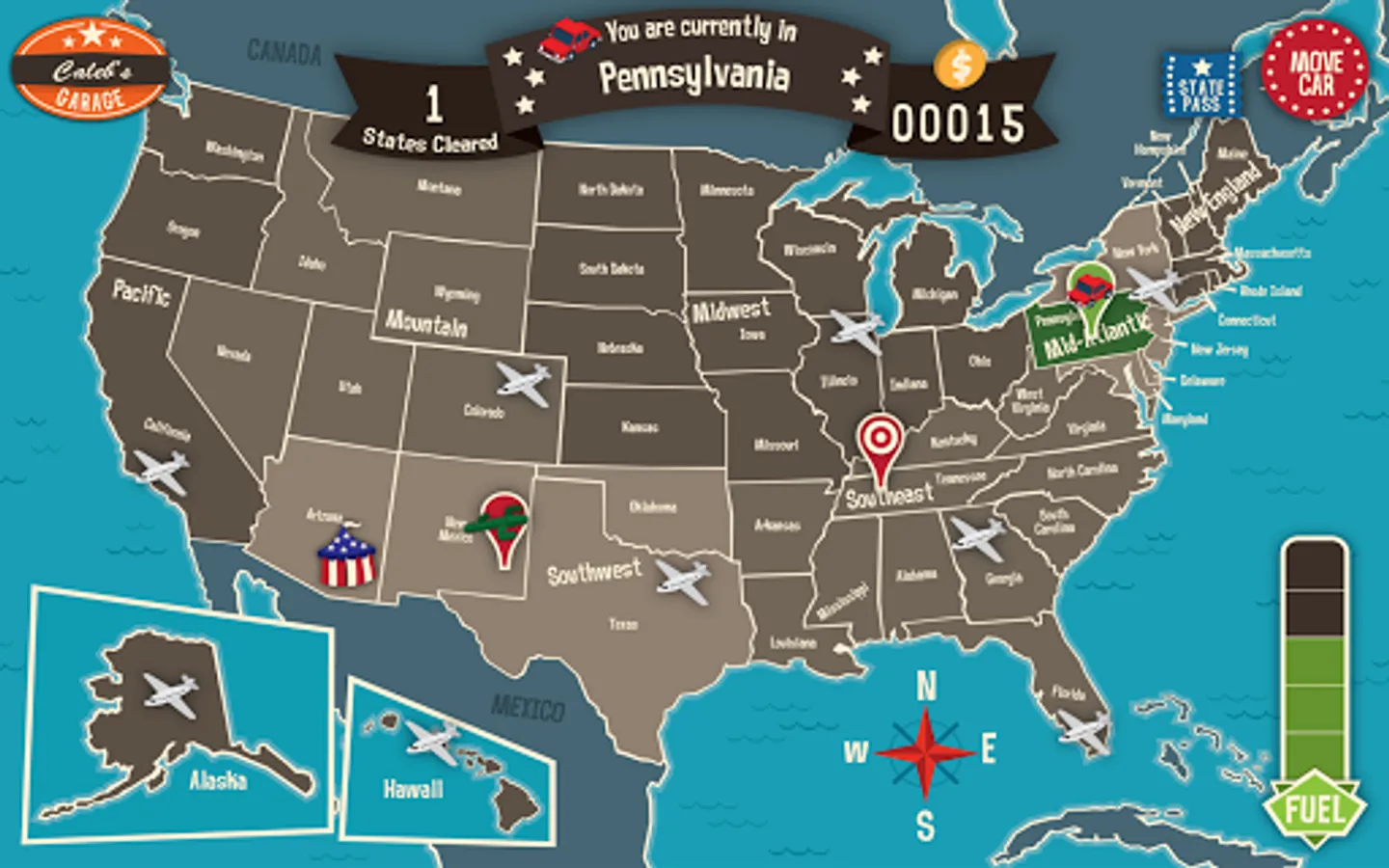 "This stellar app turns learning about all 50 states into an engaging travel game."