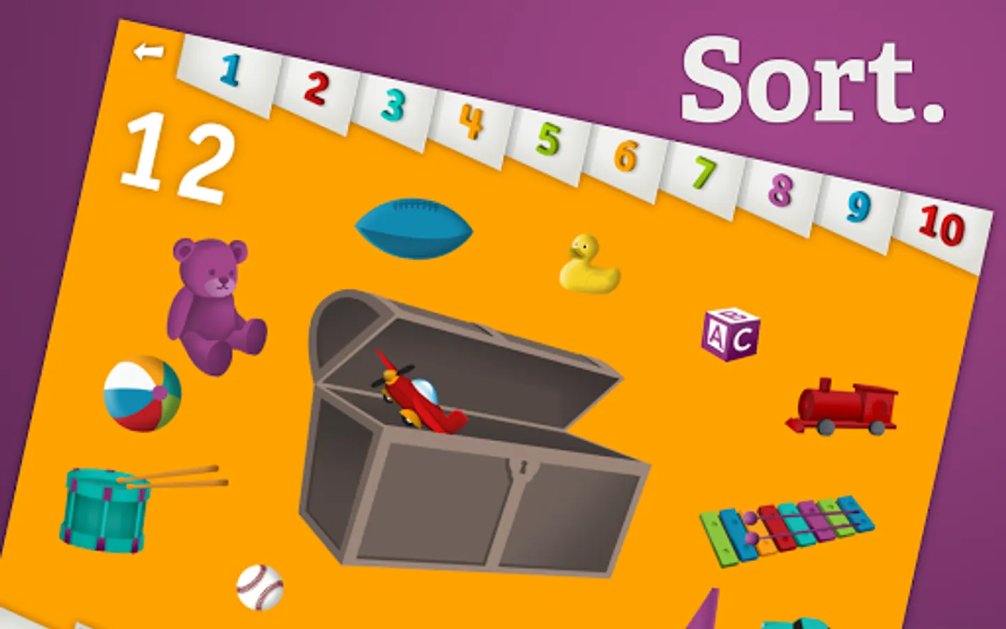 • 20 puzzles and mini-games that teach quantity, order and sorting.