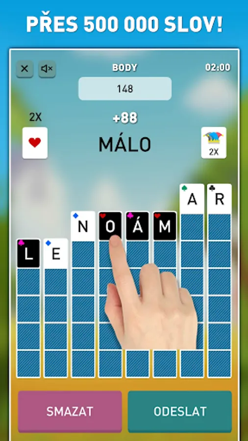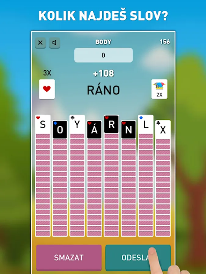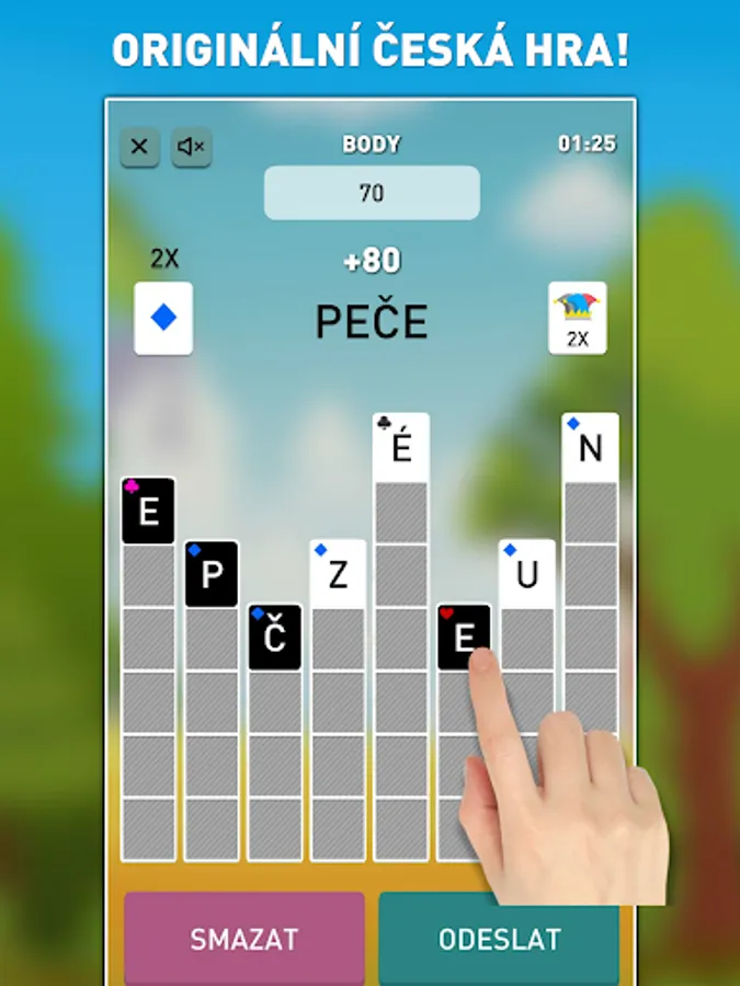 1) 8 card columns with different letters will be displayed on the screen. By tapping on individual cards, form Czech words with 3 to 8 letters. Each card also has its own card symbol for *combo* purposes.