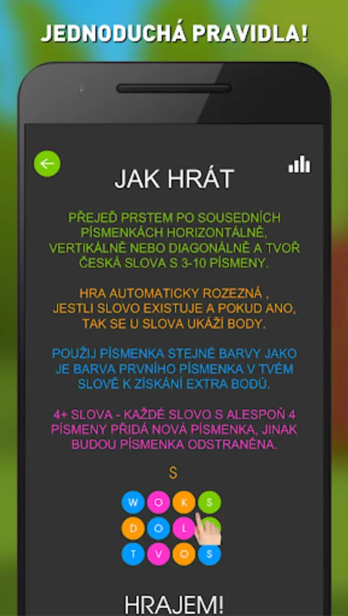 The game contains more than 500,000 Czech words, but due to the vastness of the Czech language, we are not able to include all the words. If you find a word that the game does not recognize, please let us know and we will add the word. Thank you for your understanding.