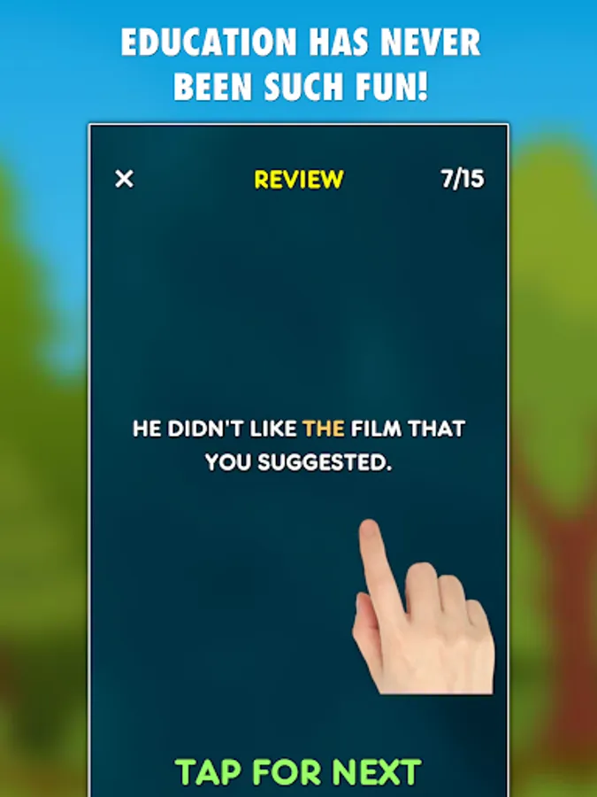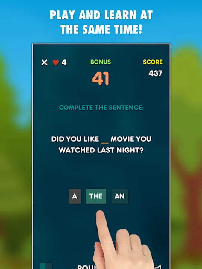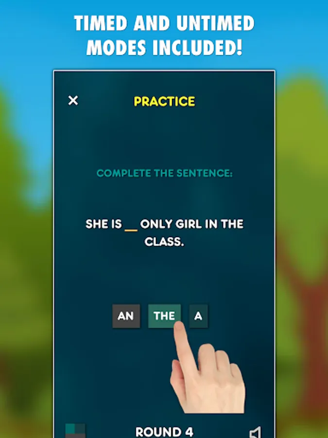 Articles Grammar Test is an educational game that will train your knowledge of English articles and their usage in English sentences in an entertaining way!