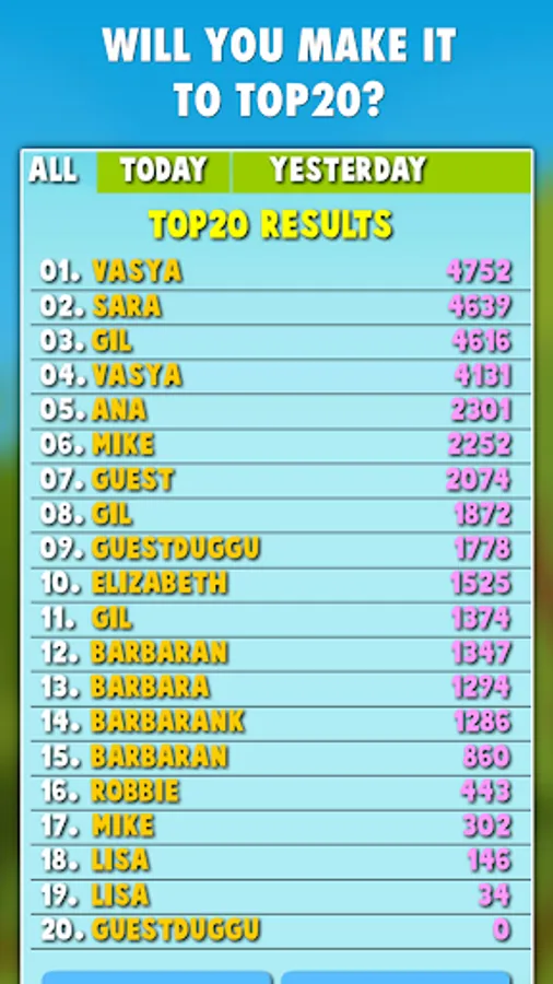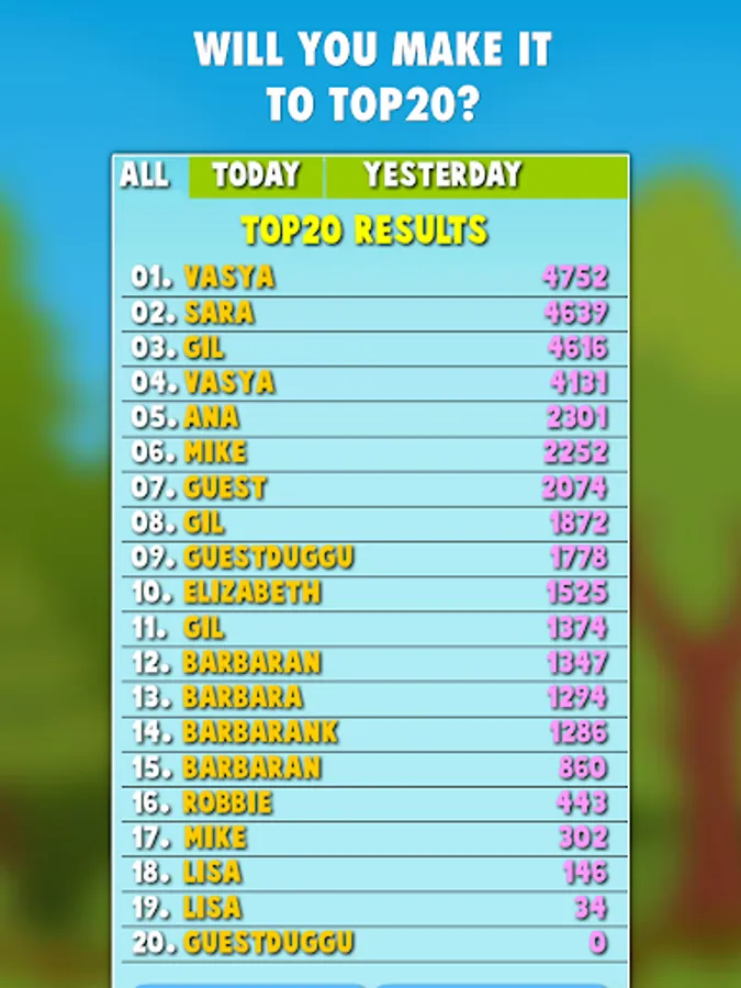 Play as a single player and try to beat your personal bests or submit your points and challenge other people from all around the world! Will you make it into TOP20?