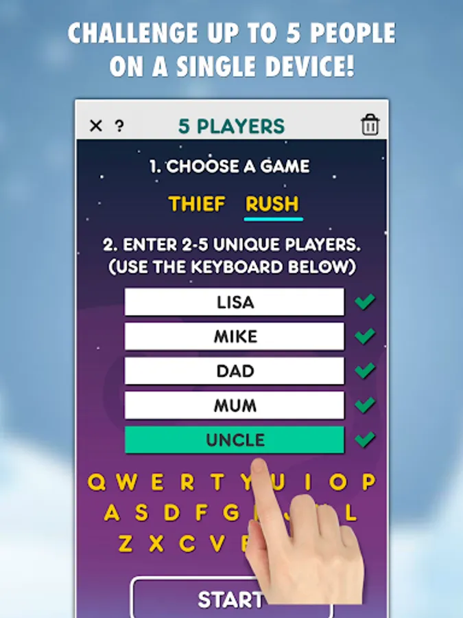 * Multiplayer - play against up to 5 people on a single device