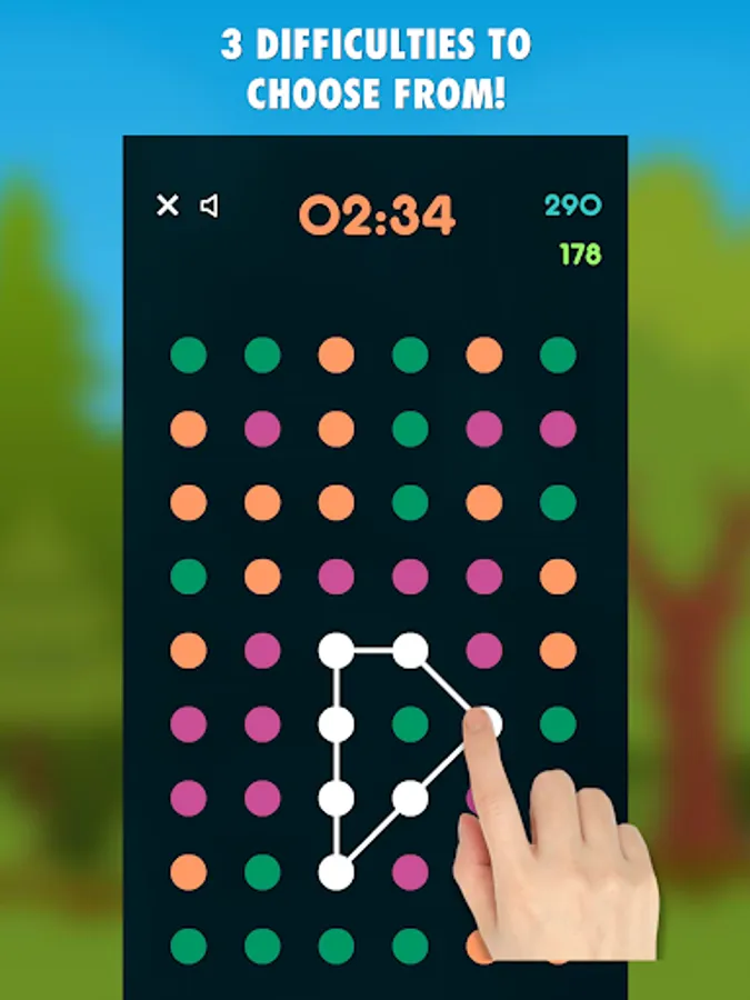 Colonies game is simple to play, but difficult to master! Your task is to connect dots of the same color in a way that the last dot in your chain is connected with the first dot in your chain. The bigger chain you create, the better score you get! You can choose from 3 difficulties. To create chain simply slide your finger over the dots of the same color.