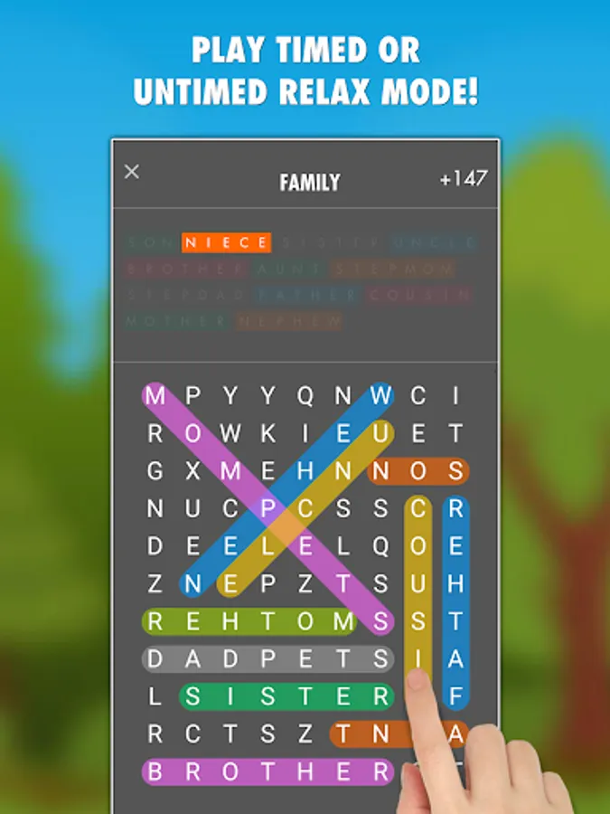 Don't like playing on points and under a time limit? Visit an OPTIONS section (".." button in the top left corner of the main menu) to activate a relax mode in which you play with no time limit or points.