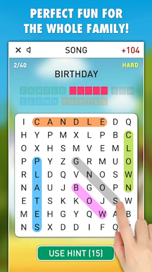Find those words is an original word search game in which you must try to find all the words shown on the screen as fast as possible. Just move your finger over the letters horizontally, vertically or diagonally to select the words. When you are stuck, you can use a hint that highlights the first letter of the hidden word.