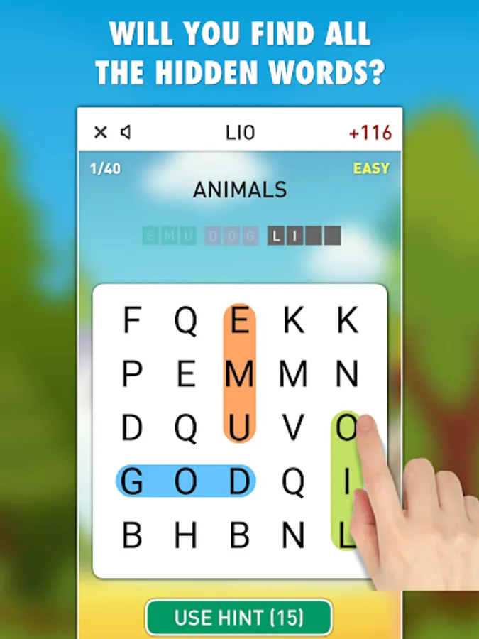 Find Those Words is a relaxing word search game with 120 levels in 3 difficulties! Will you find all the words?