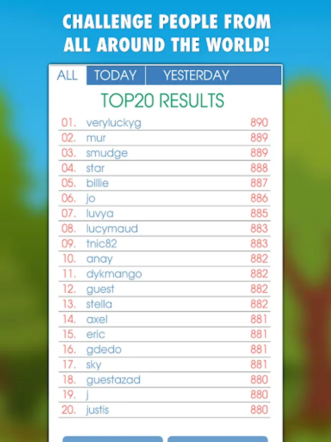 * 14 different TOP20 leaderboards - compare your score with points of other people from all around the world
