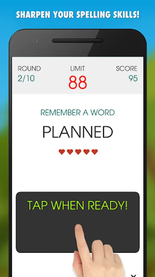 1. There will be shown a word on screen, remember it and once ready tap the button under the word!