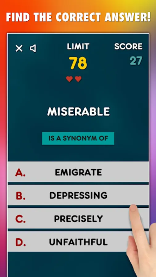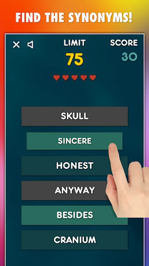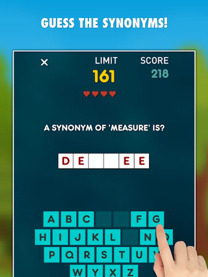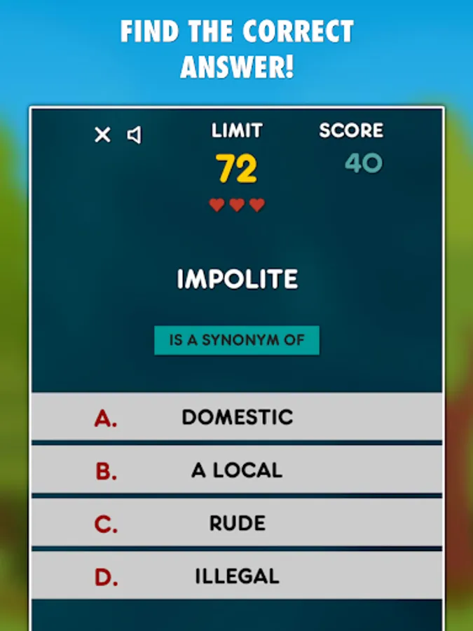 Test and train knowledge of English words and their synonyms in an entertaining way!