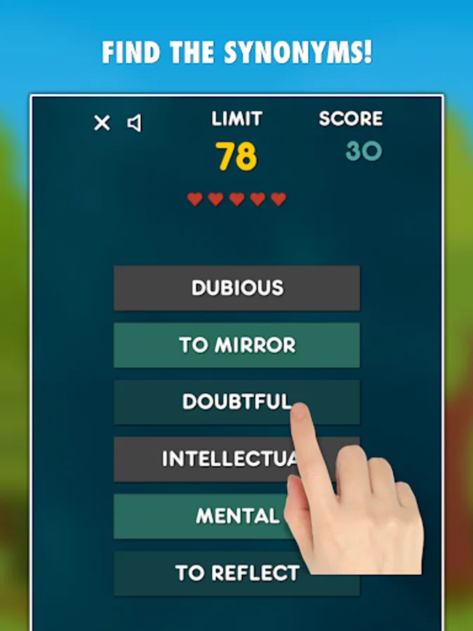 * Find Pairs - tap on two words on the screen that are synonyms to each other.