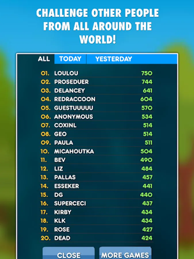 Choose from a few different game modes and try to break your personal bests or submit your points and challenge other people from all around the world!